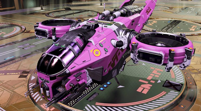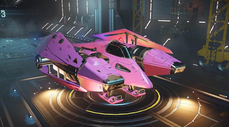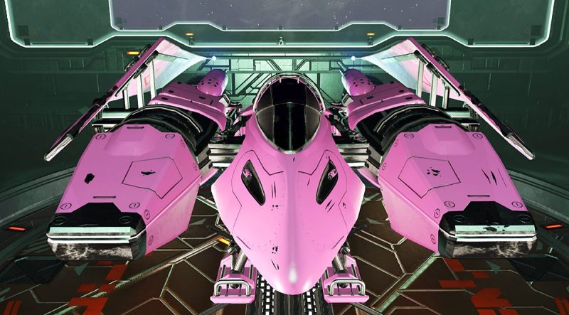 今まで乗っていたのはOUTLAWSアプデ時に入手したピンク+ホワイトのファルコン+タロン型。とても可愛いピンクで、旅先で偶然出会って以来の付き合いでした。海賊実装の影響もあって、戦闘はずっとこのピンクマカロンちゃんでぶいぶい言わせてましたw