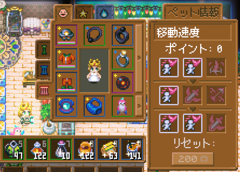 ウルシュライムの後半の移動速度がかなりきつかったのでペットは移動速度特化で。防御系不要なので薬も被ダメ系は不要。