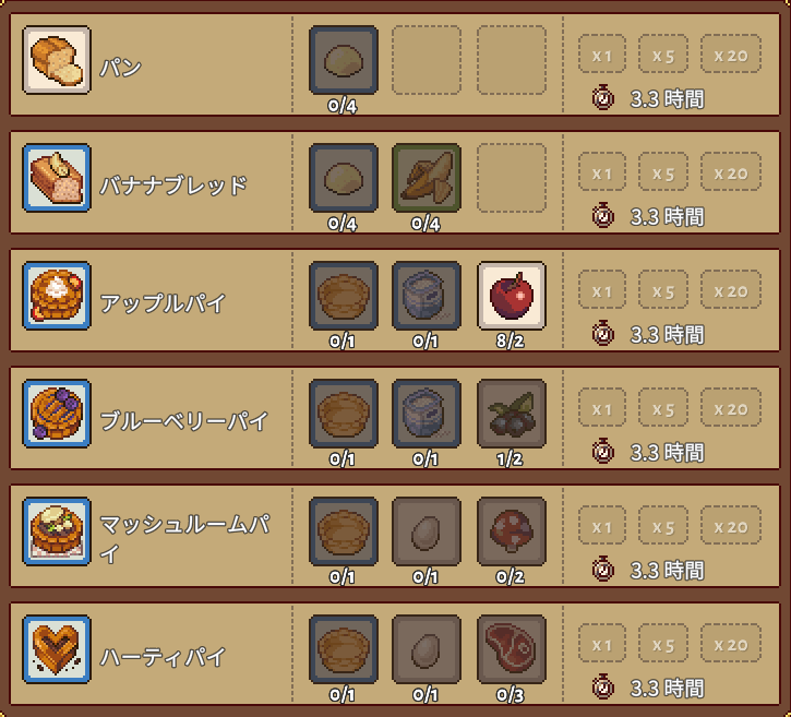 料理のレシピは滅茶苦茶多かった。家具やアイテムもいっぱいあったけど料理多いのは嬉しい楽しい。